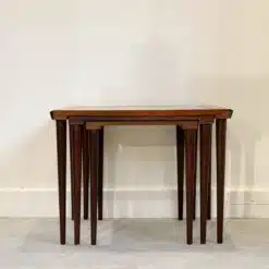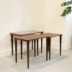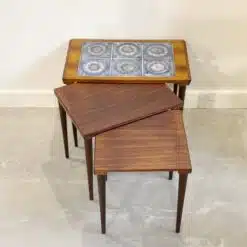北歐老件三件式玫瑰木磁磚套桌