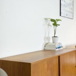尺寸很棒的橡木邊櫃 左右滑門設計 配上小小圓圓的把手 內置的層板上下可以略為調整 難得小尺寸適合小家庭 還在找小邊櫃的朋友可別錯過囉