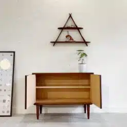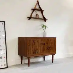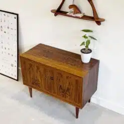 這件玫瑰木邊櫃安靜地倚靠著牆邊