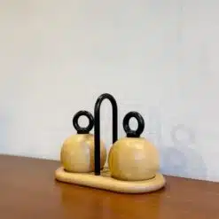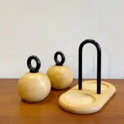 Bodum 出品的 Ball Boy 鹽與胡椒罐,1980年代由 C. Jørgensen 及Richard Nissen共同設計,木頭的溫潤、金屬的冷峻,構成北歐設計中最和諧的日常美學,看似壺鈴的造型設計,讓「加鹽」這個動作,變得像是餐桌上一場溫柔的重量訓練。