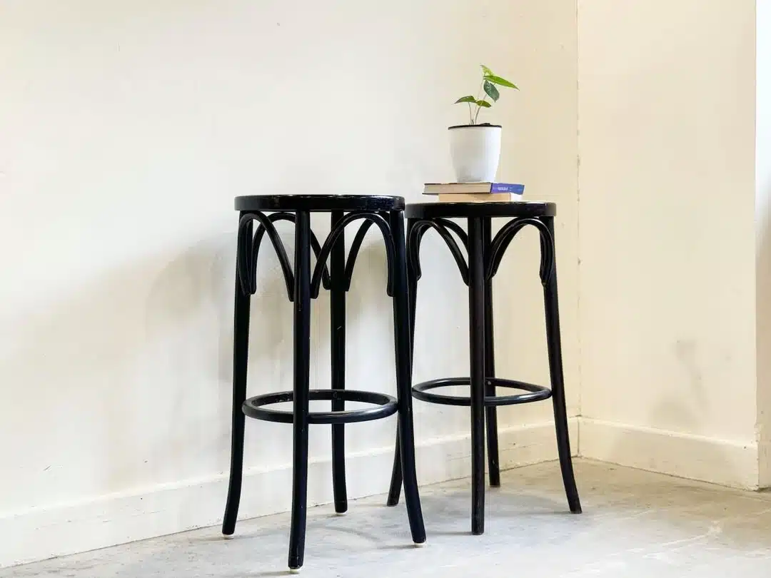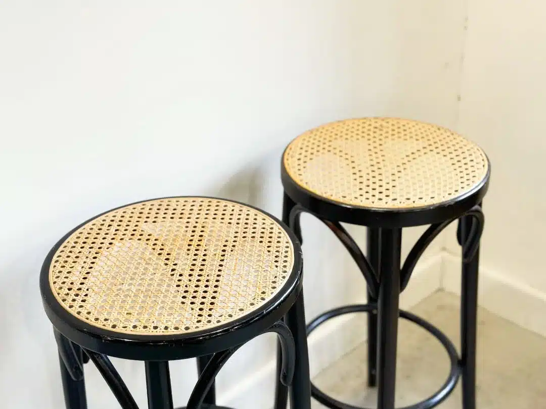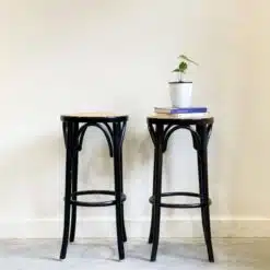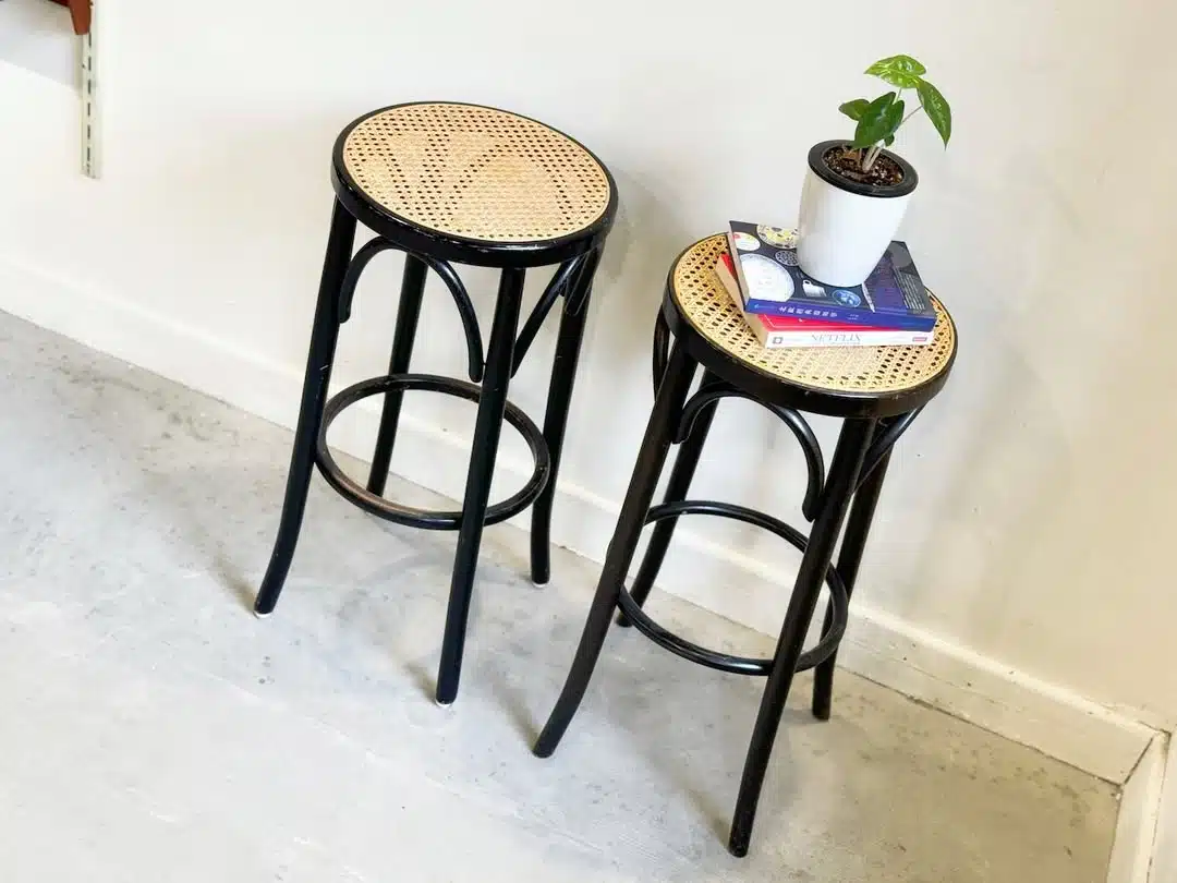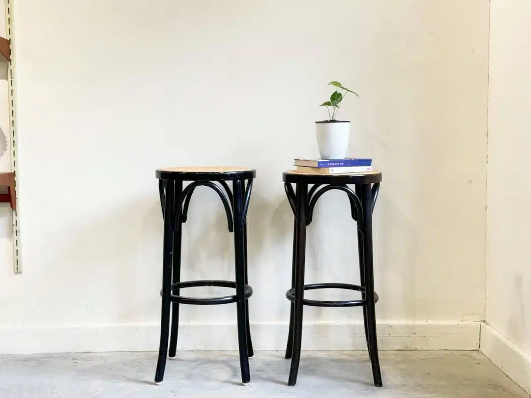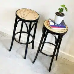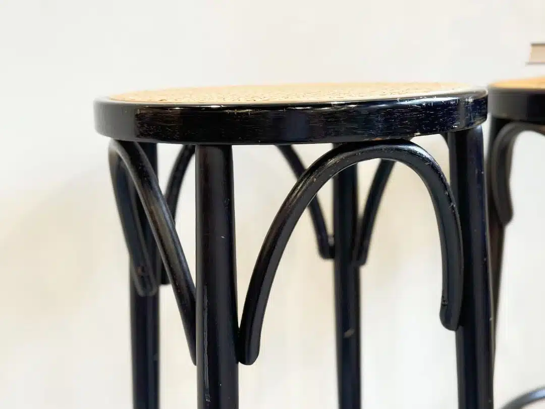 – 曲木藤面高腳椅 – 材質:曲木/籐 尺寸:直徑37 x 高75cm