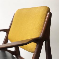 機翼型的扶手為Arne Vodder椅子設計中常見的元素,後寬前窄的形狀提供了手肘舒適的依靠,