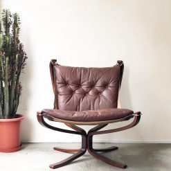 設計師Sigurd Ressell的超經典代表作,對於北歐家具設計史上有著深遠影響的設計師之一,這款獵鷹椅為曲木版本,將帆布利用金屬扣環固定於四個支點之上,造就了猶如吊床般的超舒適坐感