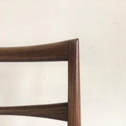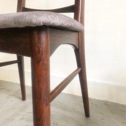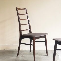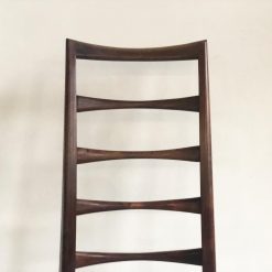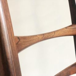 這把高背餐椅出自丹麥設計師Niels Koefoed之手,使用珍貴的玫瑰木製造,有機線條由椅腦開始一路貫穿至椅腳;小細節的部份如椅背橫桿以及前後椅腳中間的輔助桿的曲線,也尤如精巧細琢般的細緻;坐墊底下主要由連結四支椅腳的ㄇ型框架給予支撐,穩固又牢靠,如此藝品實屬難得。